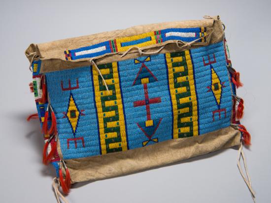 Plateau jewelry, woven and beaded bags, moccasins, tule mats, shawls, wing dresses, ribbon shirts, and wing dresses. Tamastlikt designed Pendleton blankets.