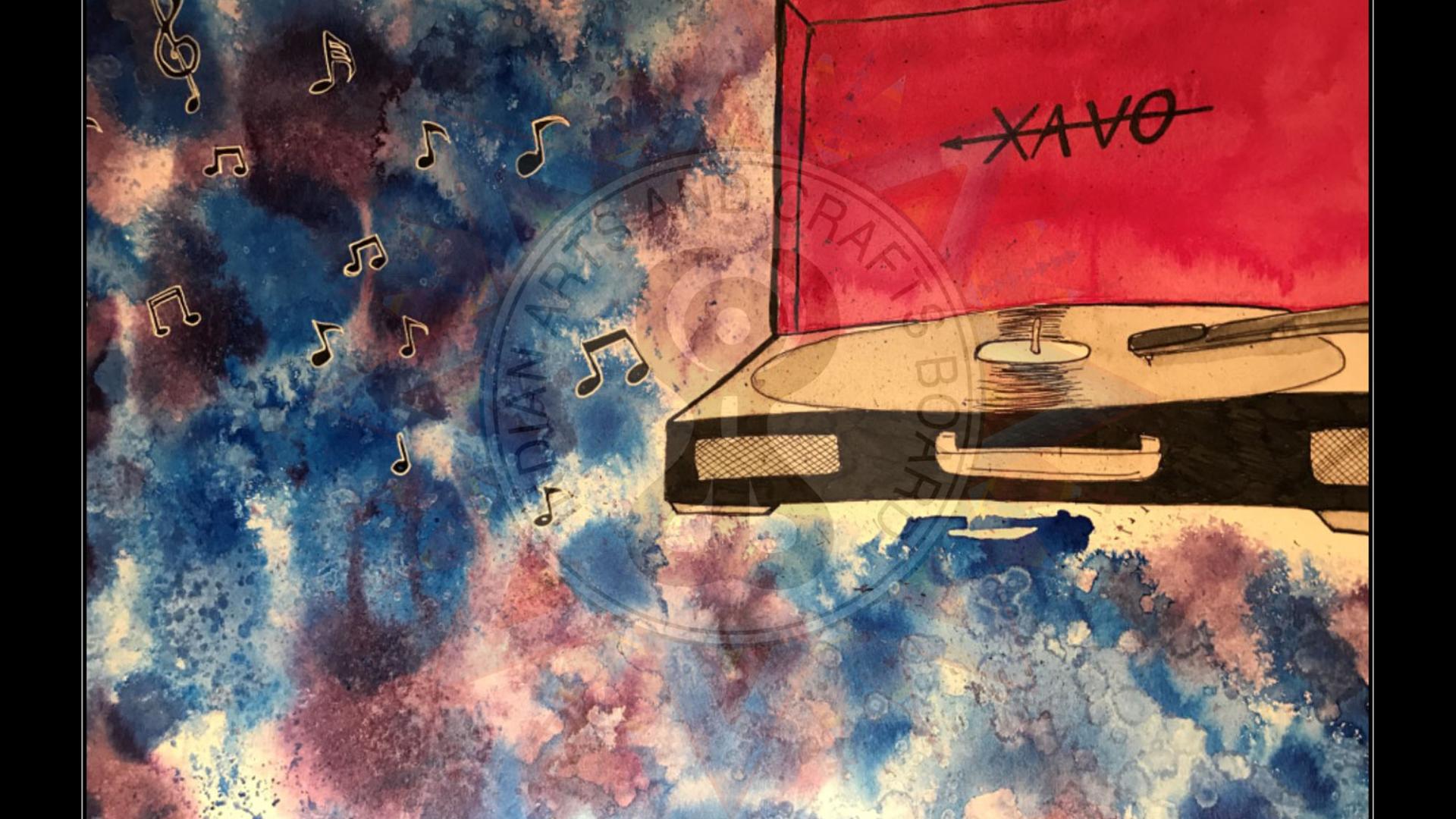 La Pointe's illustrations are simple with a stylized nature meant to capture a broader idea.  He explores art through the media of coffee-stained watercolor paper, watercolors, inks, and colored pencils, executed in a style befitting a contemporary graphic novel.  To create his unique works, the watercolor paper is washed with day old coffee, and thick grain sea salt is applied to give a splattered effect.  Then, the images are sketched onto the paper.  Various colors of India ink and watercolor paint are then used to colorize the image.