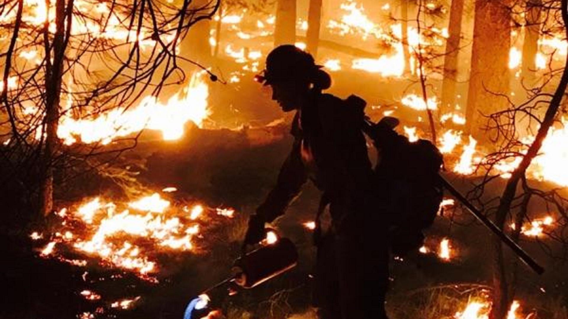 Aravaipa Veteran Fire Crew member, Miriam Zirato uses a drip torch to fight fire with fire. (BLM)