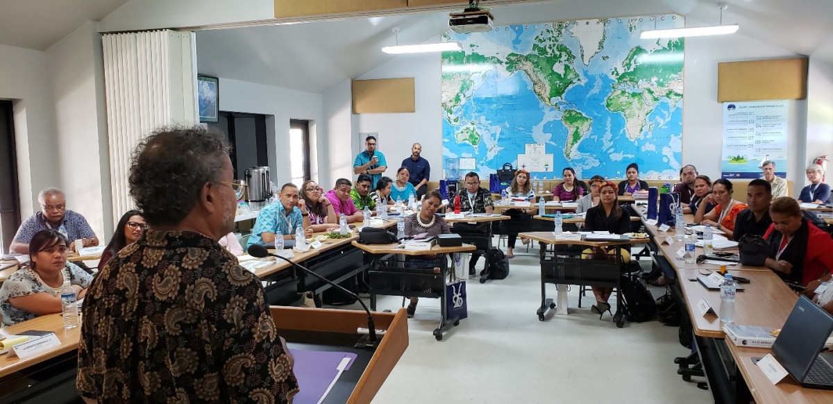 Yap State Chief Justice Cyprian Manmaw addresses the 2018-2019 Cohort of the ELDP
