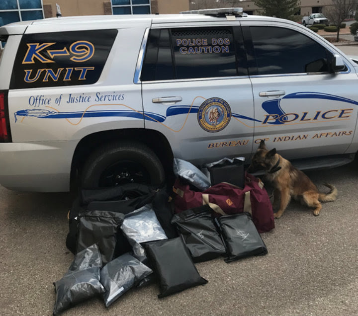 New Mexico - A Bureau of Indian Affairs K-9 unit was patrolling the interstate on the Laguna Pueblo when he conducted a traffic stop. Upon searching the vehicle, the BIA K-9 officer detected several packages containing more than $230,000 worth of marijuana and THC Concentrate.