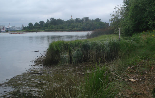 The Herring’s House (formerly Seaboard Lumber) habitat restoration project site near the mouth of the Lower Duwamish River, shown here in April 2011, looking towards Kellogg Island, is one of the four habitat restoration projects undertaken by the natural resource trustees in King County, Washington. This project restored marsh and riparian vegetation in an intertidal, off-channel basin and opened a nearby public park. Photo credit: Michael Carlson, FWS.
